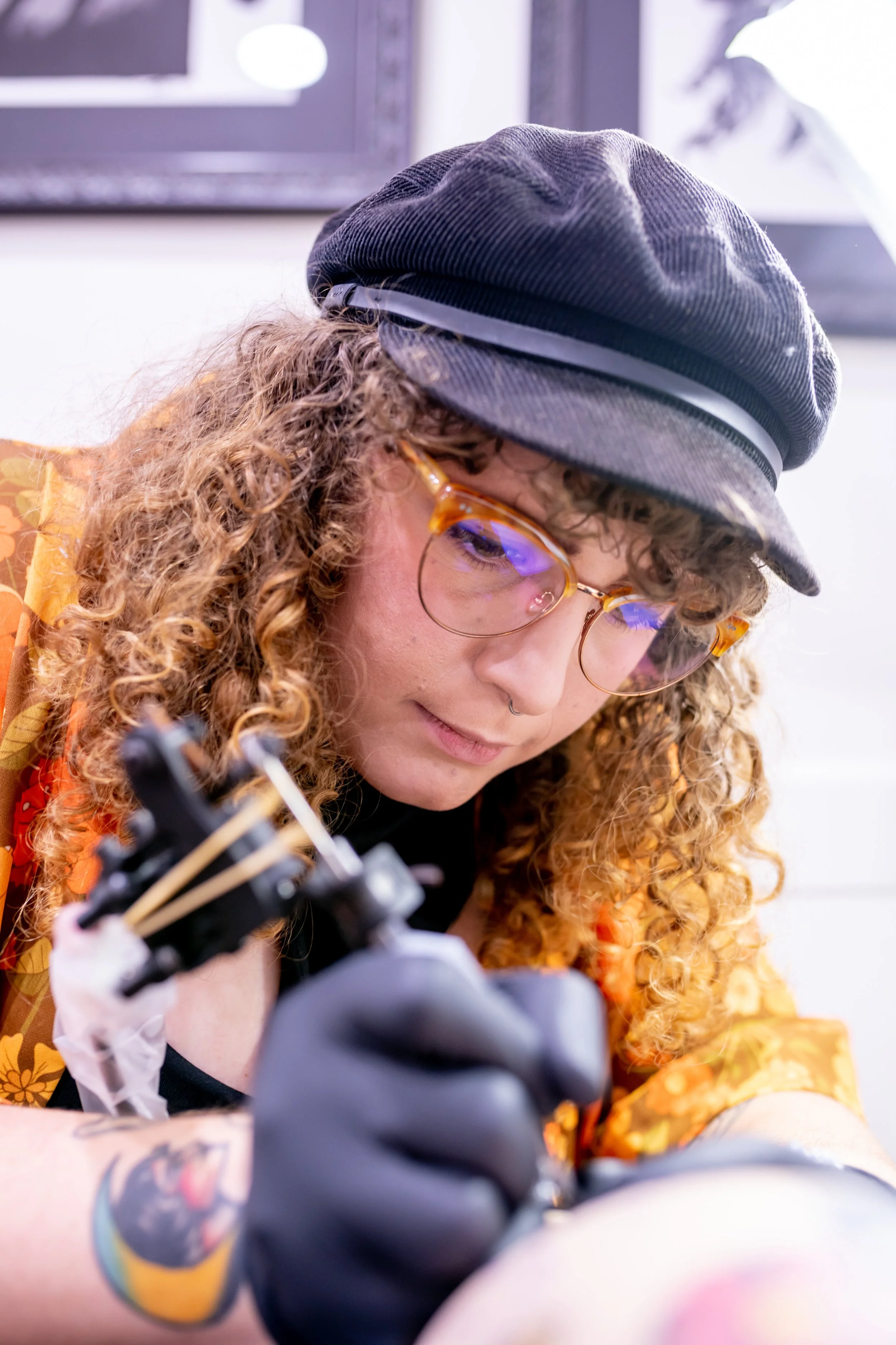 Brisbane-based tattoo artist with an interest in blending fine art and linoprint influences into distinctive, custom designs. Their work often draws inspiration from film, video games, and anime, as well as a love for quirky animals and unusual plant life.